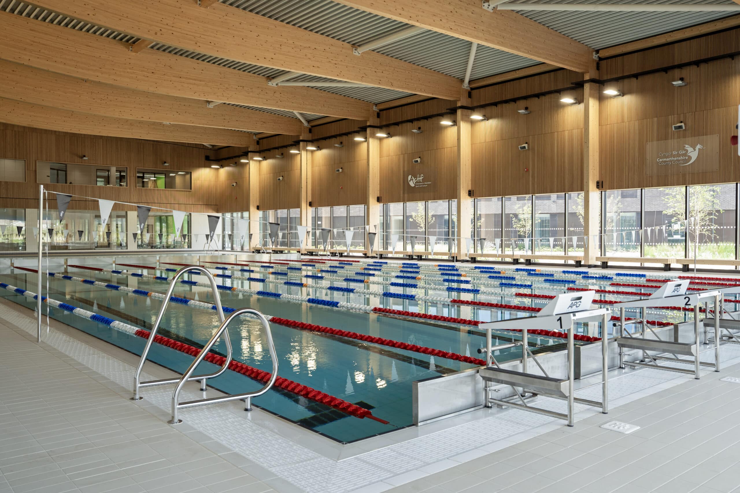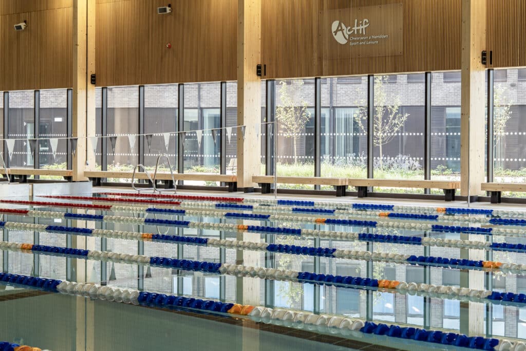 The swimming complex at Canolfan Pentre Awel in Llanelli, delivered in partnership with our specialist contractor Buckingham Pools, offers new opportunities for local residents to engage in swimming, exercise, and rehabilitation. Designed to accommodate a wide range of users, these modern pools provide accessible spaces for leisure, learning, and clinical support.