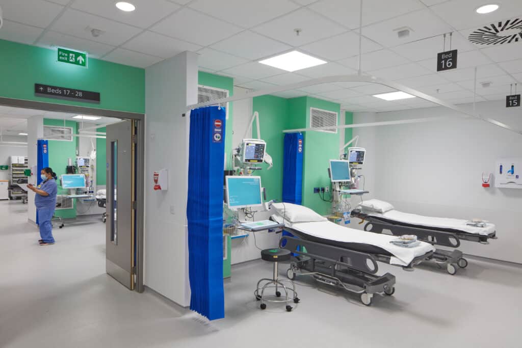 - HCA (private healthcare – on floor 5 and half of floor 4): 43 beds due to open February 2022