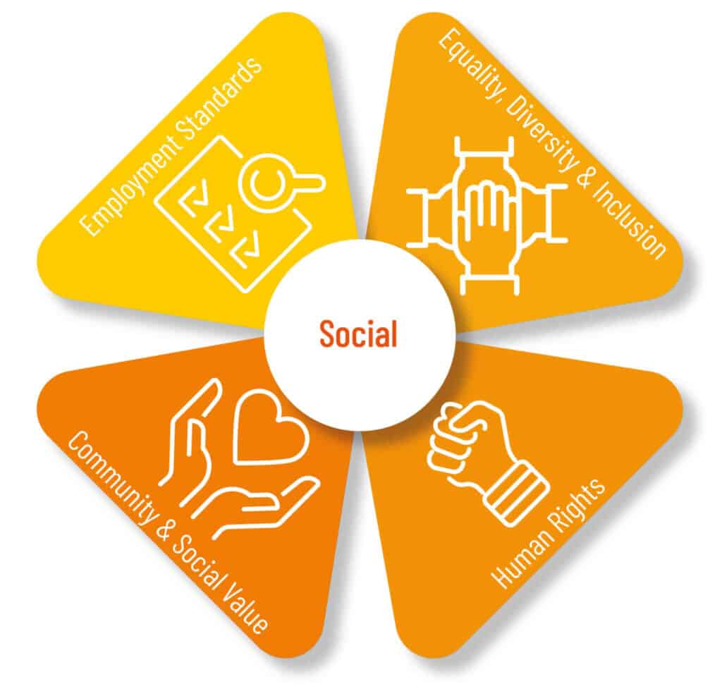 Our social approach addresses 4 streams and a range of indicators.